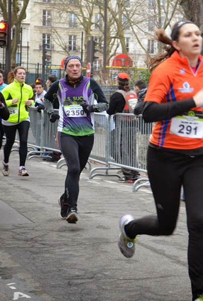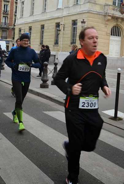 Température hivernale évidemment, 0° mais du soleil. Je croise Jeff, un habitué de cette course et des courses en général. Michel, le compagnon d’Evelyne, participe aussi.