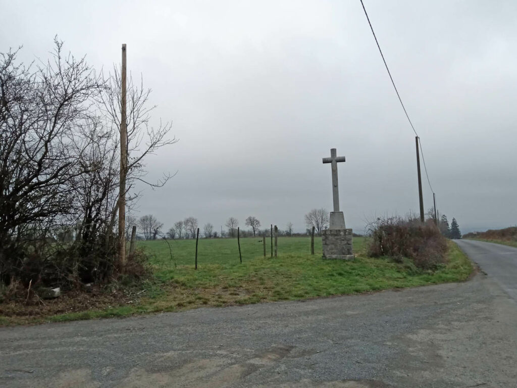 Un sommet très facile, il me suffit de ma garer à un croisement sur la D133, là il y a une antenne et une croix en pierre. Je marche un peu le long d’un chemin en terre, le sommet indiqué sur la carte IGN se trouve dans le champs. Je me déplace dans le secteur en faisant des photos, dans le champ à côté et le long d’une haie où il me semble que ça monte légèrement. Mission accomplie !