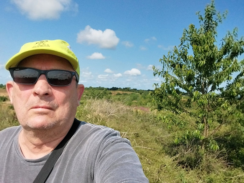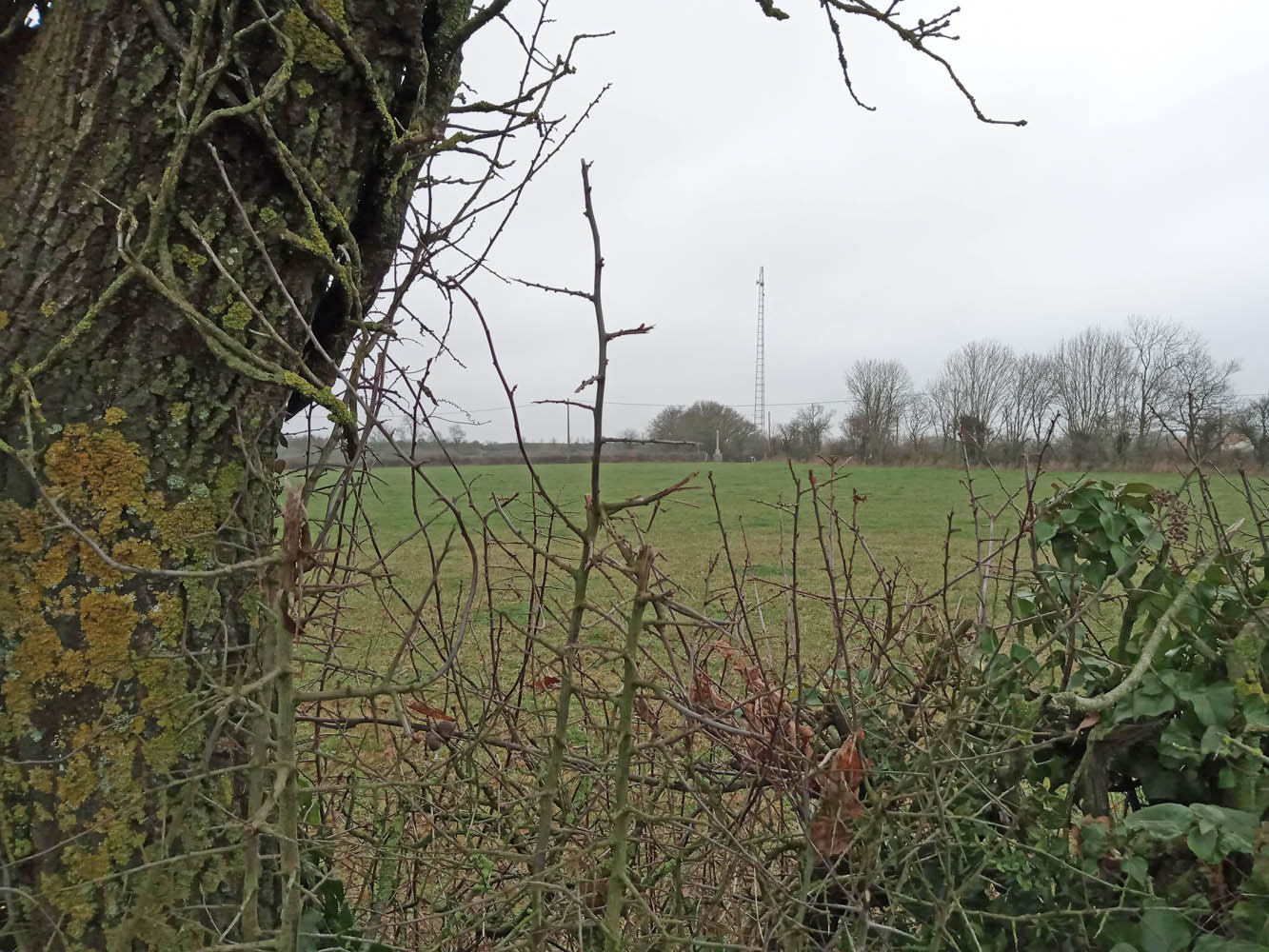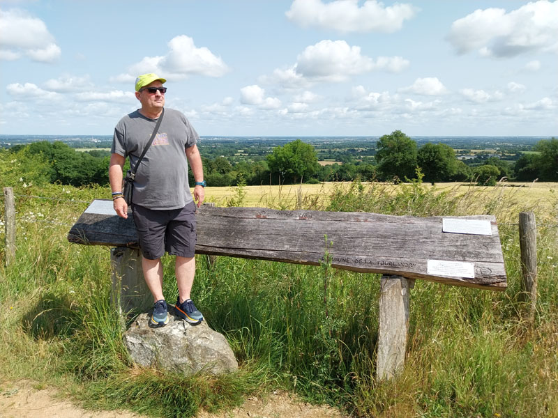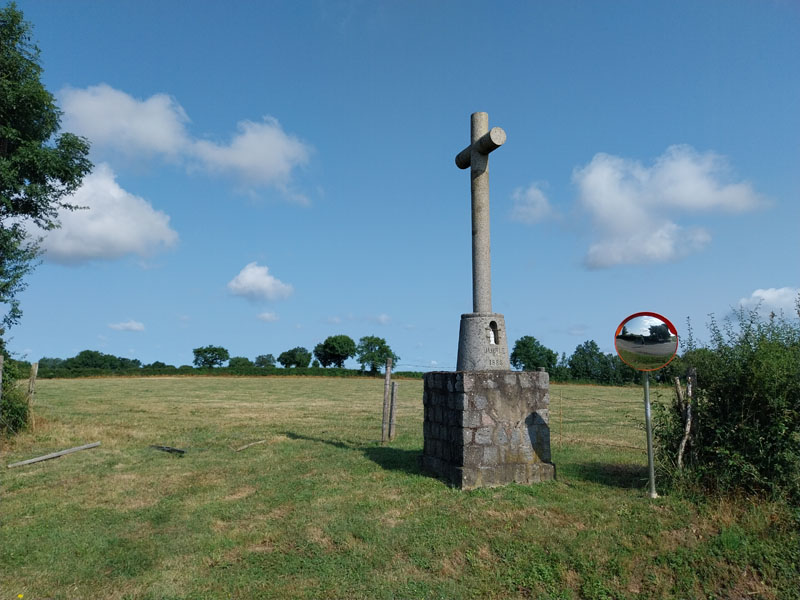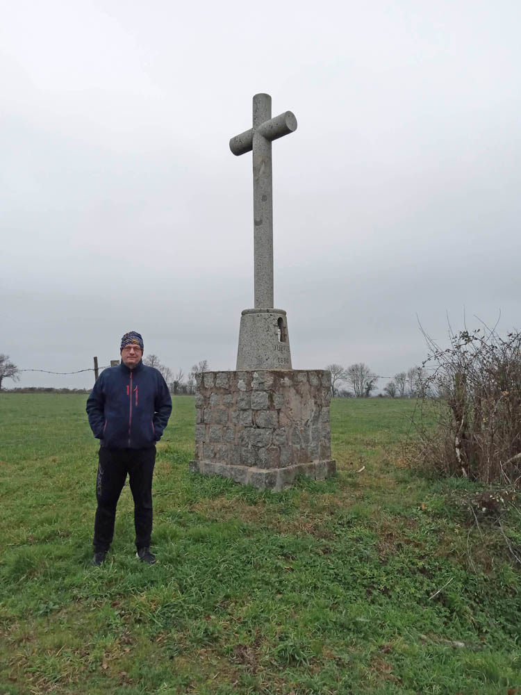 Histoire de ne pas aller dans le Maine-et-Loire seulement pour ça je participe à une course à pied le samedi soir au Plessis-Grammoire, puis vais dormir dans un Première Classe près d’Angers. Le lendemain matin, après un bon petit-déj et une petite heure de voiture me voici revenu au même endroit qu’il y a 4 ans, près de la croix en pierre. Je refais le même parcours, le champ avec la cote 216, le champ avec la haie qui monte, etc.
