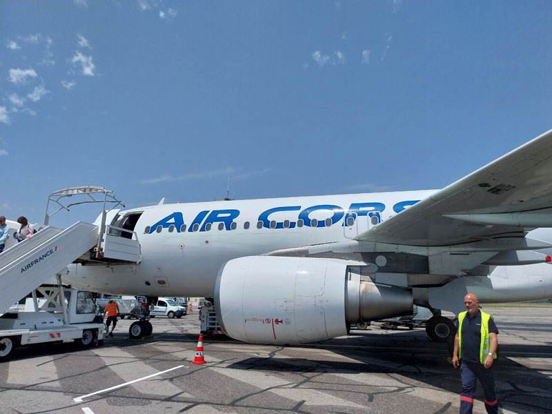 Cette année c’est en avion que se fait le voyage, c’est quand même plus rapide que la voiture et le ferry. Nous atterrissons à Bastia, récupérons la voiture de location et allons passer la nuit à Corte, dans un superbe appartement loué par l’accueillante Karine.