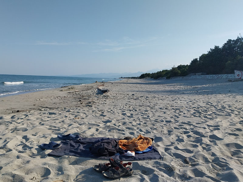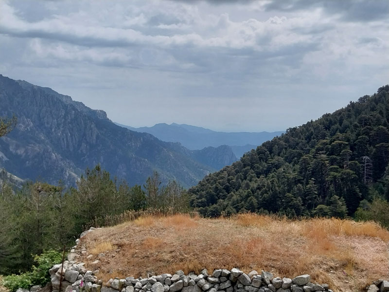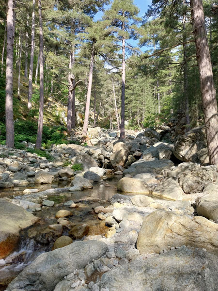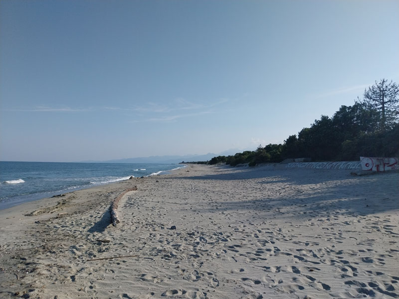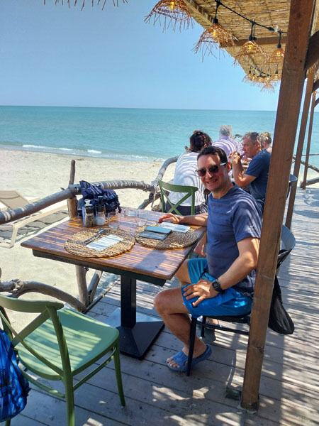 Redescente du refuge vers la voiture en un peu plus de 5 h, petit restau sur la route et nous rejoignons notre nouveau logement, une superbe petite maison au milieu des vignes, près du bord de mer. Émilie nous indique une plage où l’on accède par une piste en terre. Un superbe endroit, une plage quasi déserte rien que pour nous. Nous allons nous baigner, l’eau est bonne et nous rafraichit après nos 3 jours de rando ! Le soir nous allons manger une pizza sur la place du village à Aléria. Mais notre expédition en Corse n’est pas finie, prochain objectif le Monte Renoso.