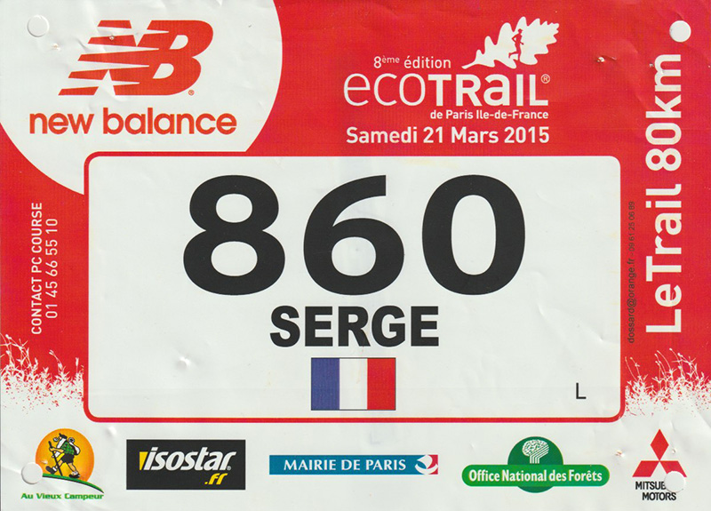 Après mon abandon 4 ans auparavant sur l’édition 2011, et un 50 km réussi en 2014, me revoici sur la base de loisirs de Saint-Quentin-en-Yvelines au départ du 80 km, bien décidé à prendre ma revanche ! Je suis en compagnie de Laura, une copine de mon club de l’ES Sucy. Jean-Luc et Valérie, également du club, nous ont accompagnés en voiture et nous récupéreront à l’arrivée près de la Tour Eiffel… si tout va bien ! Je sais qu’Aurélien, un collègue de Bruneau, est également sur place au départ mais je ne l’ai pas vu. Le temps est couvert et il fait frais.