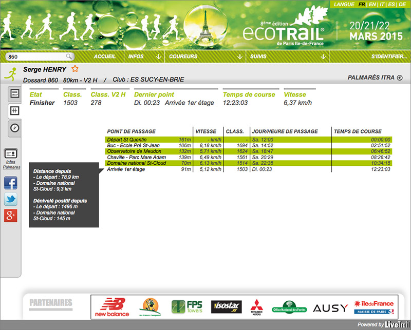 Laura a mis 2 heures de moins que moi, 10:21:57, et Aurélien 11:47:07.
