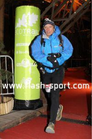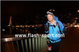 Quand je ressors de la forêt, j’arrive au dernier ravito à Saint-Cloud au 70e km, on surplombe Paris et je vois la Tour Eiffel qui scintille… Je sais que je vais y arriver, il n’y a plus qu’à descendre vers la Seine et à suivre les quais sur une dizaine de kilomètres. Enfin « plus qu’à » tu parles… ! Ces derniers kilomètres sont longs, je trottine et marche un peu de temps en temps. J’ai la Tour Eiffel en ligne de mire mais elle se rapproche doucement. Enfin j’y arrive, un couloir formé par des barrières m’amène vers un des piliers. Malgré l’heure tardive – il est plus de minuit – il y a quelques spectateurs qui m’encouragent, et des bénévoles me dirigent vers l’escalier.