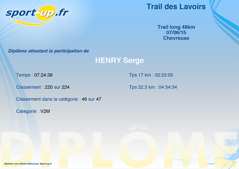 L’arrivée a lieu dans le village de Chevreuse, où j’en termine bien cramé, dans les toutes dernières places… Laura est arrivée depuis près d’une heure en 6:35:40. Aurélien quant à lui a mis 5:40:09. De véritables fusées !