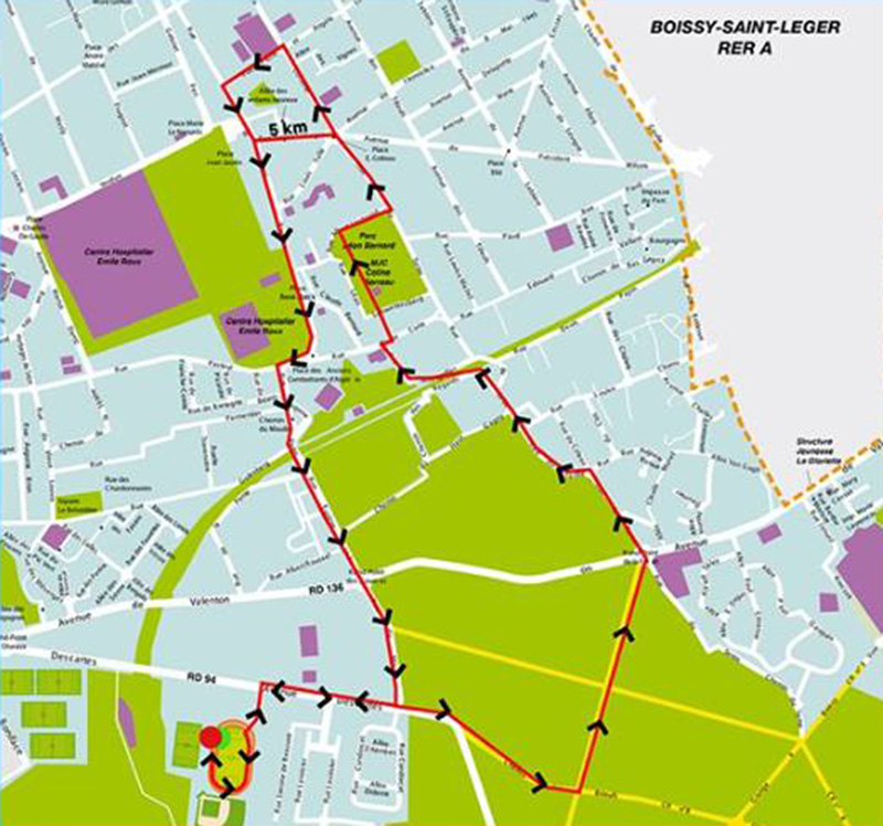 Le départ est donné sur la piste du stade et nous nous engageons sur l’avenue qui mène à un bois, que nous allons traverser sur quelques centaines de mètres. Quand nous en sortons nous descendons dans le centre de Limeil, puis nous remontons par une rue assez raide et qui me parait longue. C’est là que je vois Jean-Claude en ligne de mire, il rame dans la côte et j’accélère comme je peux pour le doubler. En haut on retrouve l’avenue qui nous ramène vers le stade, un tour de piste et j’en finis.