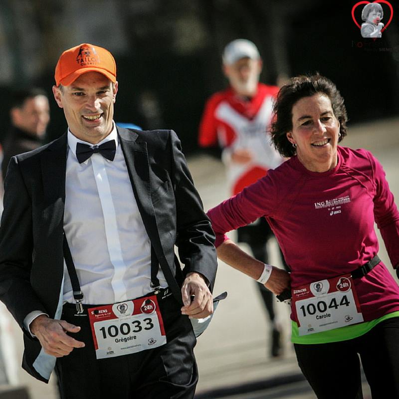 Quand la nuit tombe les badauds sont de moins en moins nombreux, et au cœur de la nuit il n’y a quasiment plus personne, hormis les coureurs. Je vais m’allonger un peu dans une tente-repos, ou plutôt je m’écroule sur un pouf ! Mais finalement j’y reste peu de temps et préfère continuer à engranger des kilomètres. Je fais la connaissance de Grégoire Chevignard, qui depuis le début de l’épreuve court en costume-nœud pap ! Bon il a quand même des baskets au pied… Nous faisons quelques tours ensemble, moi je cours en trottinant, et lui en marche rapide. Grégoire a écrit un livre sur son parcours incroyable de runner, « De mon canapé à la course à pied la plus dure du monde ». Je vous invite à le lire.