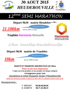 Course 311 – 10 KM DE HEUDEBOUVILLE – Heudebouville (27) – 30/08/2015